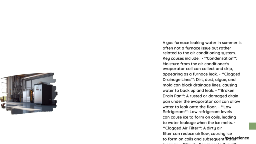 During the summer months, a gas furnace may appear to be leaking water due to ...